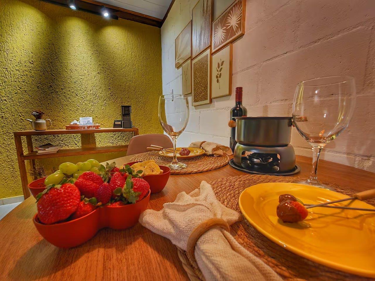 O chalé possui PANELA DE FONDUE para queijo/chocolate.