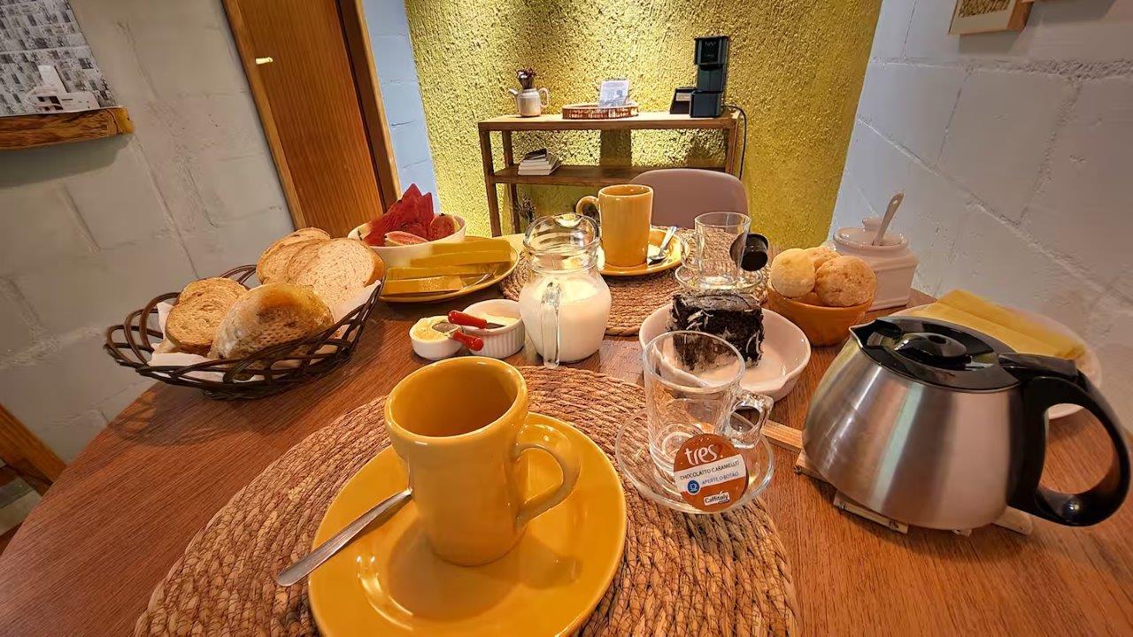 Não oferecemos café da manhã, mas o chalé possui uma cozinha muito bem equipada com todos utensílios e eletrodomésticos básicos (geladeira, fogão, micro-ondas, sanduicheira, liquidificador, cafeteira, Airfryer e etc. ). Tem um pouquinho de cada coisa e vc poderá fazer algumas ou até mesmo todas as refeições no chalé se desejar, ou ir até o centrinho onde ficam diversas opções de restaurantes, bares e padaria, além de mercados.